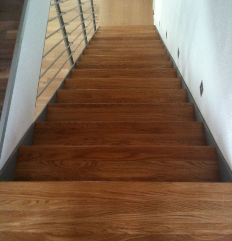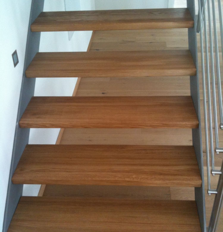 Treppenstufen in Eiche Massivholz geölt, Treppenwangen in Stahl gepulvert
