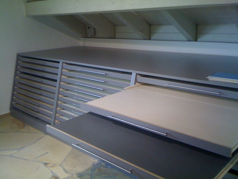 Auszugsschrank für Fliesenmuster, Firma Schimmer Buxheim