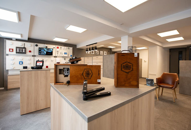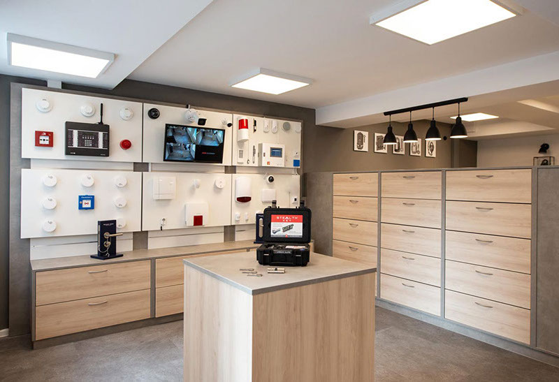 Ladeneinrichtung Pfättisch, Präsentationswand für Alarmsysteme
